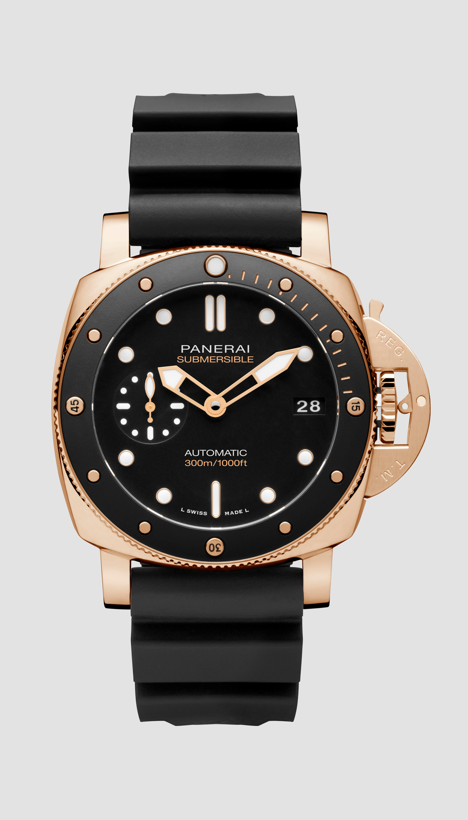 Mit der Submersible erneuert Panerai seine lange Tradition der Heldentaten in den Tiefen des Meeres. Das Design der Lünette wurde von der Lünette einer Uhr namens „L’Egiziano“ inspiriert, die Officine Panerai im Jahr 1956 für die ägyptische Marine entwickelte. Diese außergewöhnlich große und robuste Uhr besaß einen Gehäusedurchmesser von 60 mm.