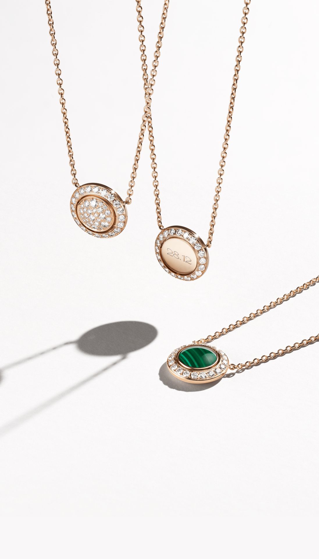 Discover your new lucky pendant, the Piaget Possession rose gold pendant set with diamonds. Stunning jewellery made to be played with, this luxury pendant has a central rose gold half sphere with an internal turning ring, a signature of this collection. The half sphere has two sides that you can switch between, one fully diamond-paved and one engraved. Personalise the latter for a unique piece to be your new everyday talisman. Embrace your playful and even mischievous side with this rose gold pendant, twist, flip and choose how you want to wear it. Jewellery that suits your style.