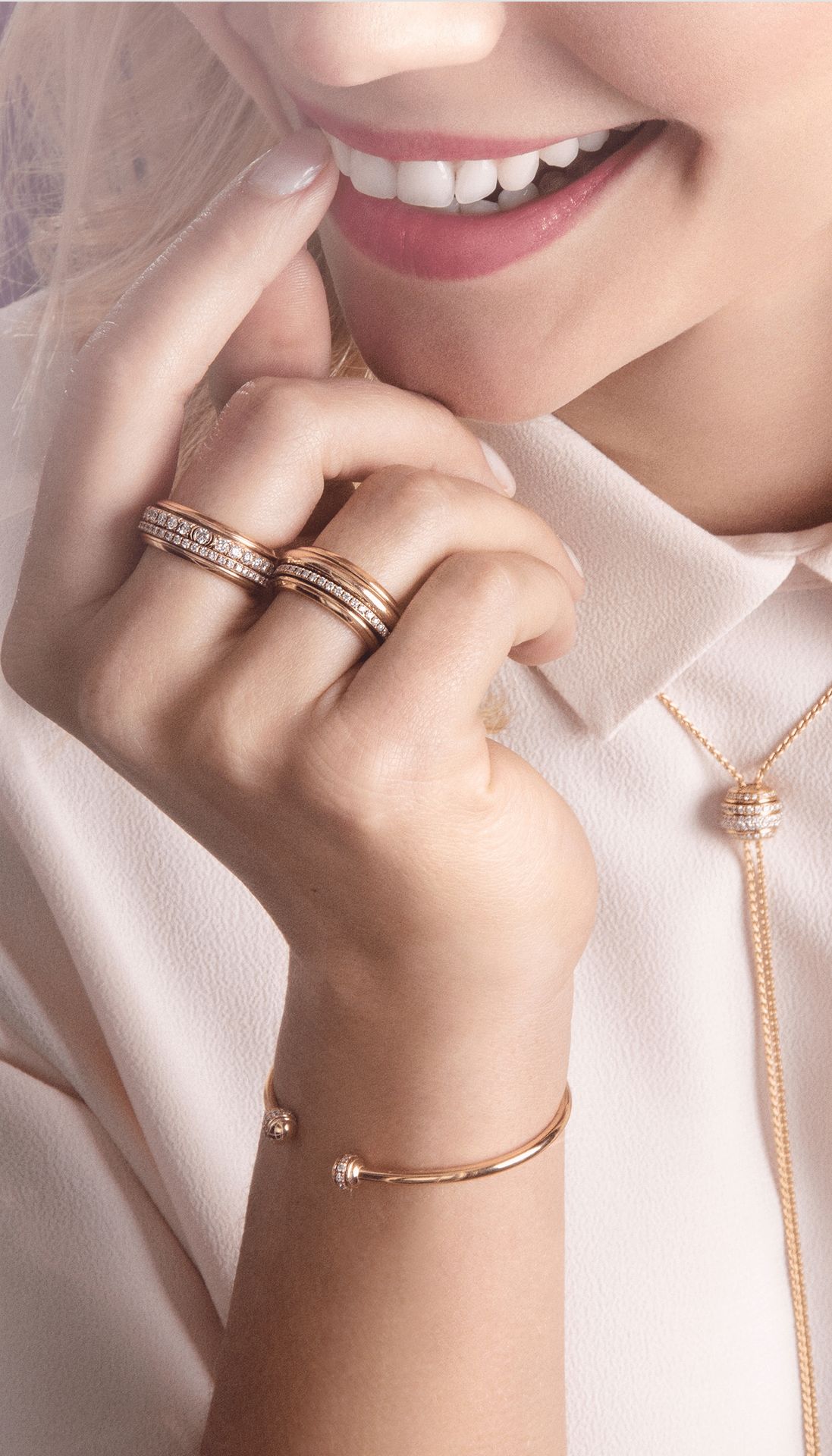 Discover this Piaget Possession double tour wrap bangle in rose gold set with brilliant-cut diamonds. A playful addition to the Piaget Possession collection, its sleek, modern design takes our iconic open bangle to another level. This rose gold wrap bangle bracelet plays with the lines and curves of Piaget Possession while staying true to its signatures: one diamond-paved turning band that adorns each end. The double tour bracelet is flexible and perfectly finished with rounded angles for comfortable wear and stunning rose gold for a glamorous yet refined look. A subtle yet eye-catching design that explores a new fluid design.