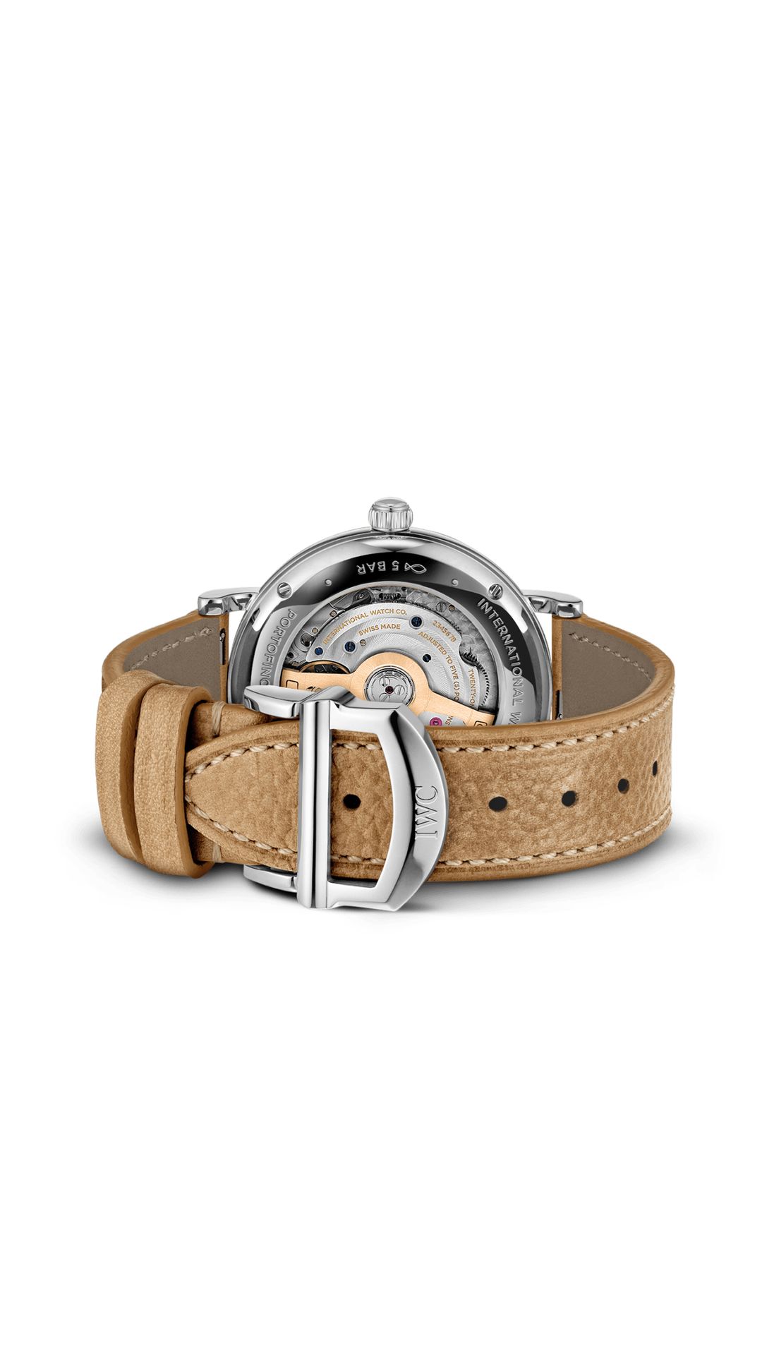 The Portofino Automatic 37 features the IWC-manufactured 32111 caliber and a see-through sapphire glass back displaying the movement.