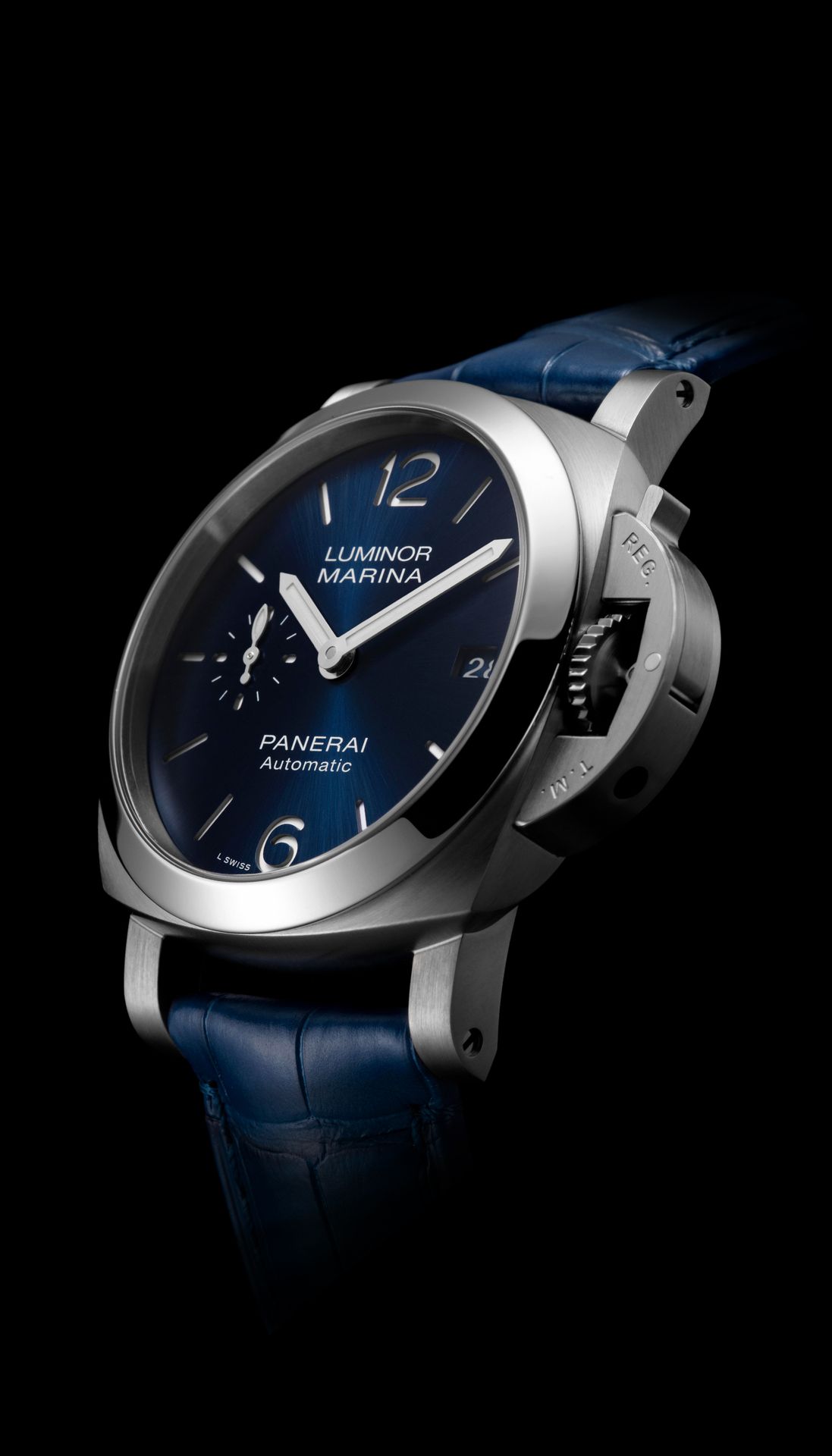 The Luminor Marina Quaranta is available with a stainless-steel case and three different dial executions possessing strong aesthetic identities, displaying a seconds sub-dial at 9 o’clock and the date at 3 o’clock. Each watch is accompanied by an alligator leather strap and a calf leather strap chosen to coordinate with their dial.